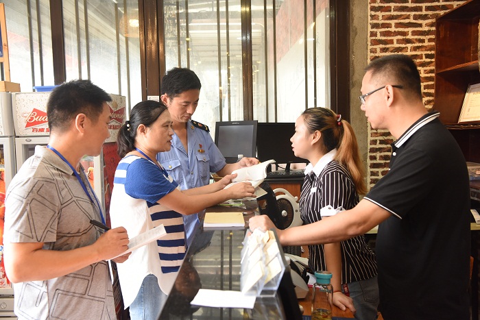 福建省莆田市荔城区纪委针对节日易发的违规公款吃喝、公款旅游及各类隐形变异“四风”问题,联合相关部门加强监督检查,严防“四风”问题反弹回潮。图为近日,该区联合督查组在新度镇某农家乐通过调阅发票排查问题线索。(莆田市荔城区纪委)