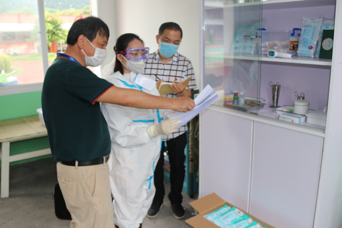 连日来,福建省莆田市涵江区纪委监委分成四个督导组采取不打呼、不听汇报等形式,开展复课复学监督检查,实地查看体温测量点、观察咨询室、食堂、医务室等重要场所,督促各中小学抓早抓细抓实,守住校园疫情防控底线。图为5月11日,该区纪委监委驻区委组织部纪检组在萩芦中心小学检查开学第一天医务室防疫准备情况。(莆田市涵江区纪委监委)