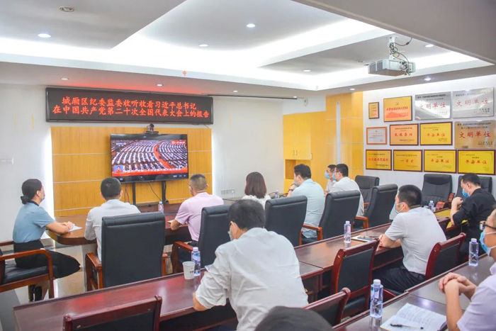 城厢区纪委监委组织全体党员干部集中收看党的二十大开幕盛况。