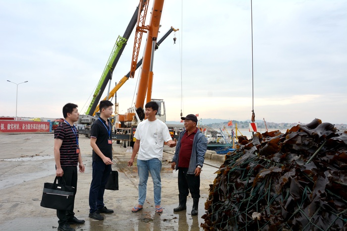 福建省莆田市秀屿区纪委监委建立“进百村入万户”监督下沉机制,围绕惠民政策落实、资金使用情况等重点,组织纪检监察干部一线走访监督,及时纠治群众身边的不正之风和腐败问题。图为该区纪检监察干部在平海镇渔港码头向海带养殖户了解情况。(秀屿区纪委监委)