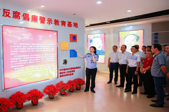 图为9月19日,涵江区纪委驻区府办纪检组组织党员干部参观莆田市反腐倡廉警示教育基地(莆田监狱)现场。