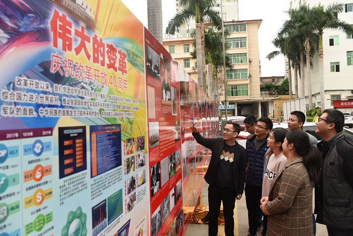 连日来,福建省莆田市荔城区纪委监委通过组织纪检监察干部观看改革开放图片展、举办征文比赛、座谈交流等形式,全面回忆和感受改革开放40年来祖国大地的巨大变化和辉煌成就,激发干部干事创业热情和干劲。图为12月14日,该区纪检监察干部正在观看图片展。(莆田市荔城区纪委监委)