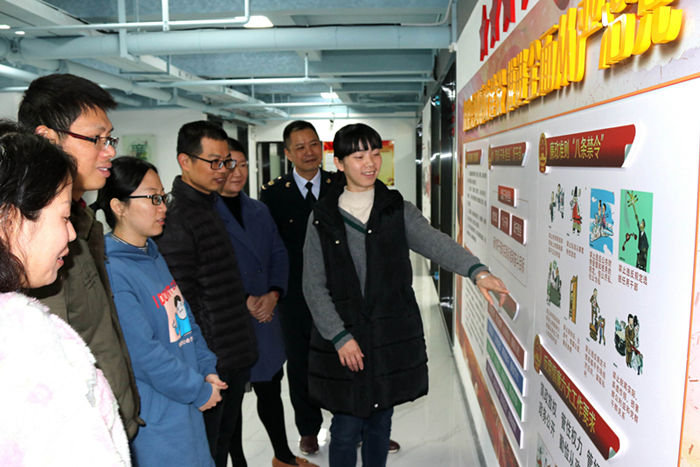 福建省莆田市涵江区不断强化基层党风廉政教育,将党风廉政建设的“种子”播撒到基层一线,通过建设廉政文化走廊、参观警示教育基地、学习典型案例通报等,教育引导党员干部明底线、知敬畏,筑牢拒腐防变思想防线。图为近日,该区涵西街道办事处党员干部在街道办廉政文化走廊驻足参观。(莆田市涵江区纪委监委)