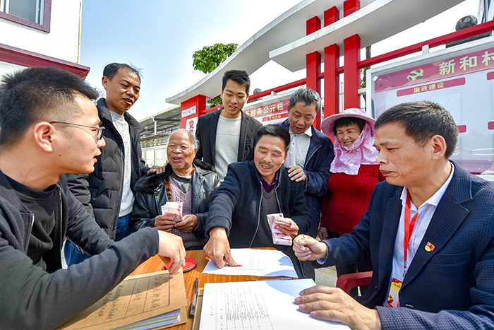 今年以来,福建省莆田市纪检监察机关深入开展“开门接访、全员接访、带信下访、入户走访”活动,严肃查处扶贫资金使用管理中的贪污挪用、截留私分、虚报冒领等问题,并及时将追缴的钱款清退给群众。图为3月27日,在该市仙游县纪委监委监督下,该县相关部门工作人员向郊尾镇新和村村民现场清退被截留的征地补偿款。