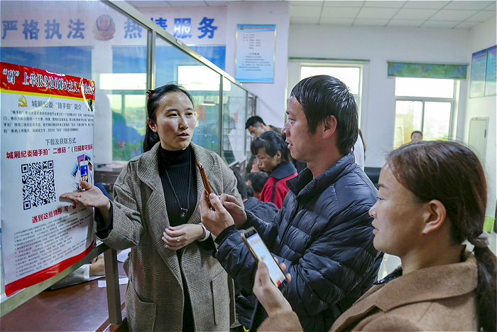 连日来,福建省莆田市城厢全面开展形式主义、官僚主义集中整治行动中,由区、镇(街)纪检干部深入村落社区,开展“‘码’上举报我核查”活动,让有举报、有意见的群众与干部面对面,并扫描“城厢纪委随手拍”微信二维码反映问题。图为近日,城厢区纪检干部在华亭镇涧口社区便民服务窗口,现场指导如何通过扫描微信二维码来信举报。(莆田市城厢区纪委监委)