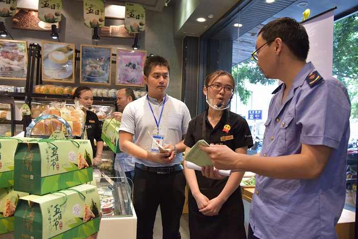 端午节期间,福建省莆田市荔城区纪委监委联合相关部门组成3个督查组,深入超市、酒楼、土特产销售店等场所察访,严查公款购买节礼、公款吃喝、违规发放津补贴等“四风”问题。图为督查组在某土特产店了解有无公款购买节礼情况。(莆田市荔城区纪委监委)