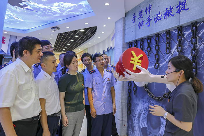 福建省莆田市纪委驻市场监督管理局纪检组加大对党员干部和公职人员的警示教育力度,通过组织观看警示教育片、参观警示教育基地、编印廉洁提醒卡等形式,教育引导党员干部自觉遵纪守法,筑牢拒腐防变的思想防线。图为8月9日,该市市场监督管理系统干部接受警示教育。吴震 摄