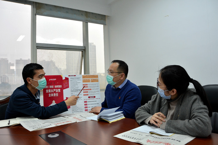 连日来,莆田市秀屿区各级纪检监察机关通过网络、微信、报纸等媒介,结合线下讨论、个人自学、展板解读等方式,切实抓好《党委(党组)落实全面从严治党主体责任规定》的学习贯彻,进一步增强“两个维护”的政治自觉,扭住责任制的“牛鼻子”,一以贯之、一体推进全面从严治党向纵深发展。图为近日,该区纪检监察干部在交流讨论《规定》的重点内容。