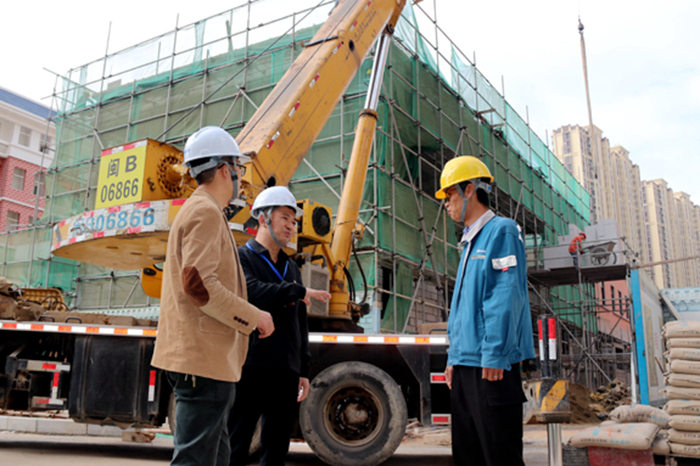 福建省莆田市涵江区纪委监委立足“监督再监督”职责定位,对区直有关职能部门在实施强产业、兴城市“双轮”驱动工作中的履职尽责情况开展监督检查,着力破解党员干部在项目推进过程“中梗阻”问题,助推涵江经济社会高质量发展。图为日前,该区涵西街道纪检监察干部在苍口安置区现场了解情况。(涵江区纪委监委)