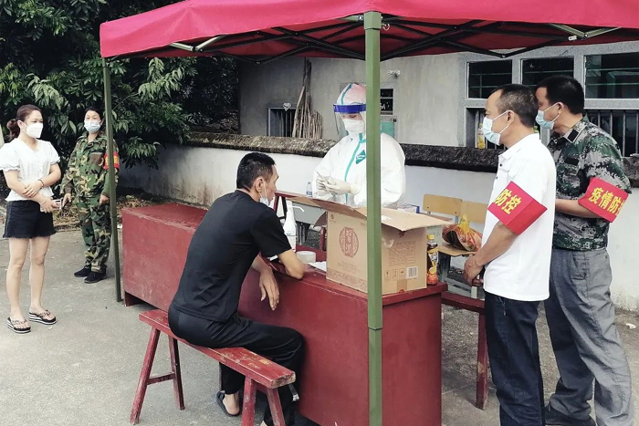 仙游县纪检监察干部闻令而动,坚持在抗疫一线接续作战,既督又干,在监督保障社区疫情防控工作,压紧压实各职能部门责任的同时,积极协助医护人员,开展全民核酸检测。图为县纪检监察干部在协助医护人员进行全民核酸检测。
