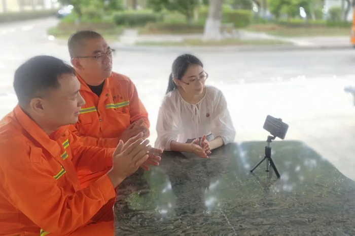 莆田市纪委监委驻市财政局纪检监察组干部在市公路中心濑溪公路站与公路养护人员共同收看党的二十大开幕盛况。