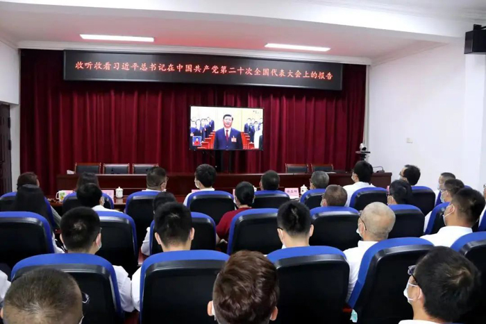 荔城区纪委监委组织全体党员干部集中收听收看党的二十大开幕盛况。