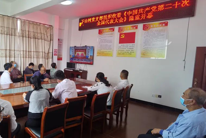 湄洲岛湄洲镇下山村村干部集中收看党的二十大开幕盛况。