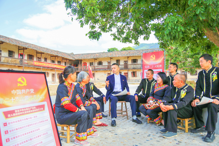 福建省莆田市纪检监察机关组建党的二十大精神理论宣讲小分队,深入基层、深入群众,通过面对面、互动化、通俗化的方式开展宣讲活动,让党的二十大精神在基层落地生根。图为近日,莆田市城厢区纪检监察干部在常太镇照车村向畲族村民宣传党的二十大精神。(莆田市纪委监委)