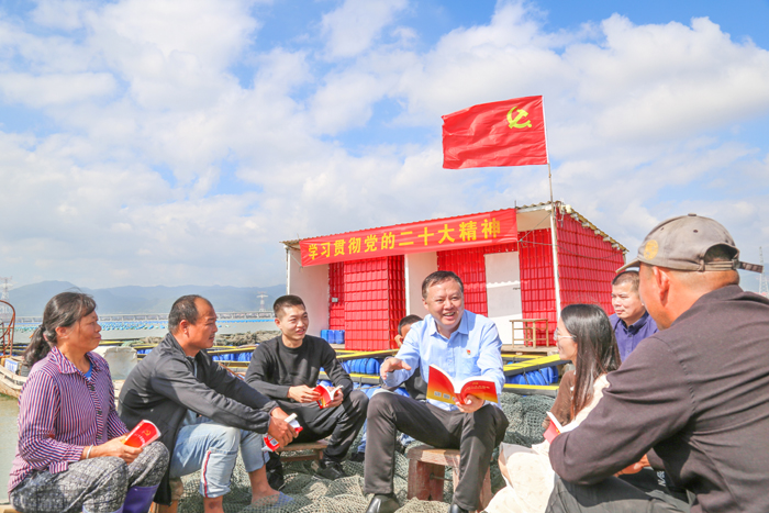 连日来,福建省莆田市广大党员干部下沉一线,向群众宣讲党的二十大精神。图为莆田市城厢区纪检监察干部在灵川镇太湖村向村民作讲解。 (莆田市纪委监委)