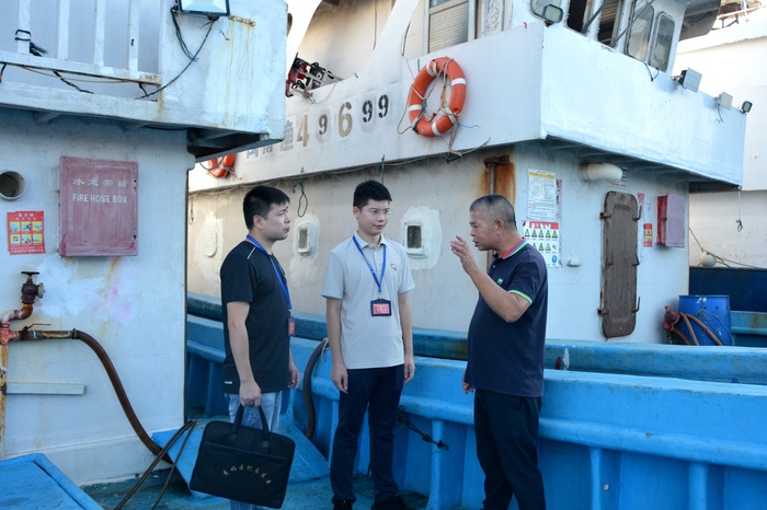 福建省莆田市秀屿区纪委监委聚焦群众身边不正之风和腐败问题专项整治,组织纪检监察干部深入田间地头、渔港码头摸排收集问题线索,严肃查处侵害群众利益行为。图为该区纪检监察干部在平海镇平海社区一级渔港某渔船上向群众了解相关情况。(秀屿区纪委监委)